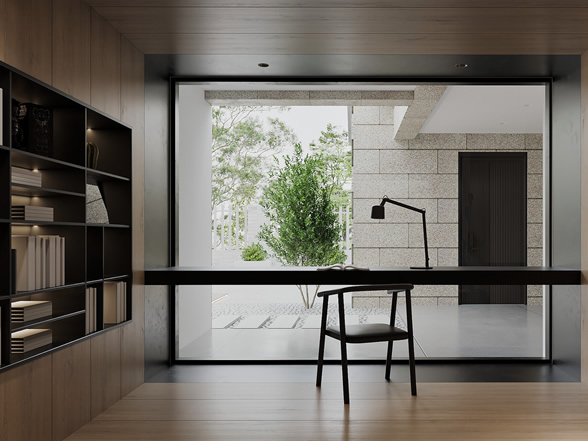 客廳的設(shè)計(jì)以高級(jí)灰作為主要元素,充分的利用戶(hù)型和室外的光影結(jié)合,運(yùn)用下沉式的設(shè)計(jì)手法,結(jié)合園林屏風(fēng)的元素構(gòu)建,營(yíng)造出一處宜賞宜居的會(huì)客公共空間