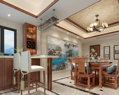 金榜山216平方沉穩(wěn)中式風(fēng)效果圖