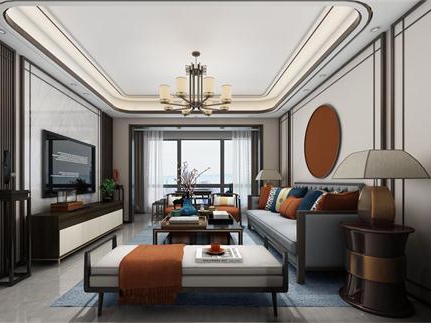 98㎡3居室新中式時(shí)尚風(fēng)格裝修效果圖