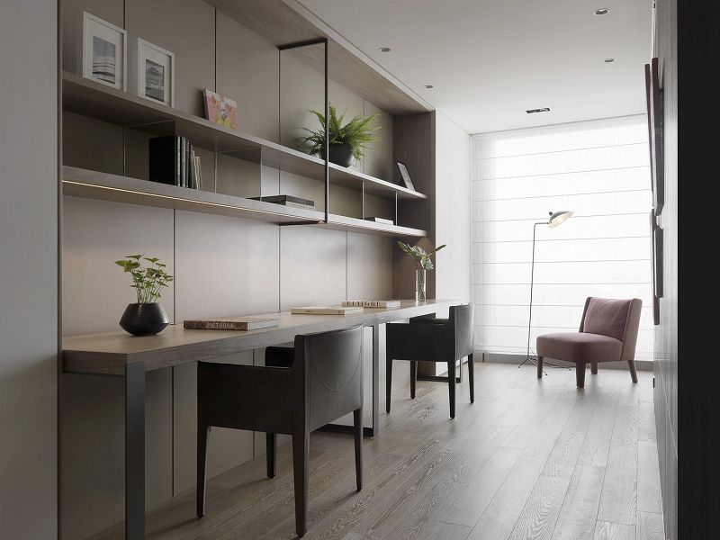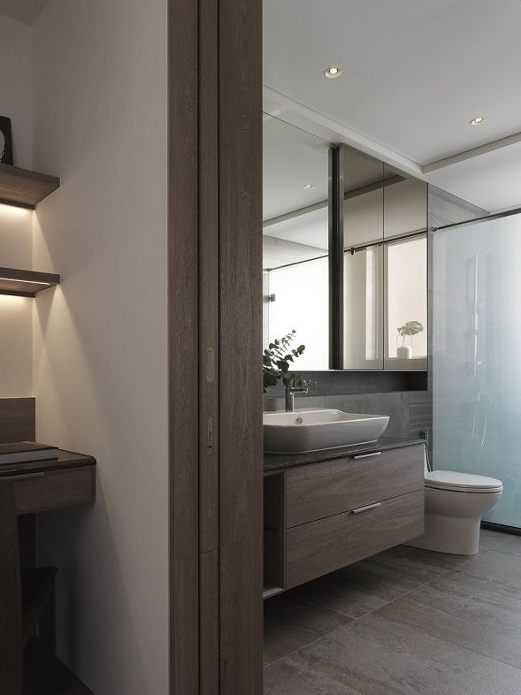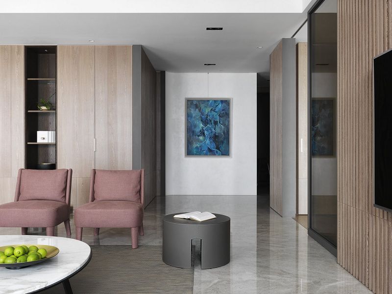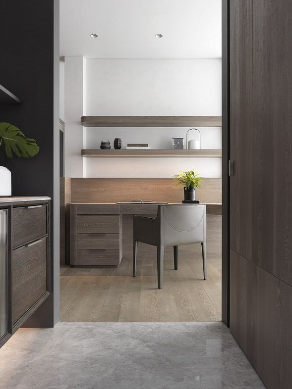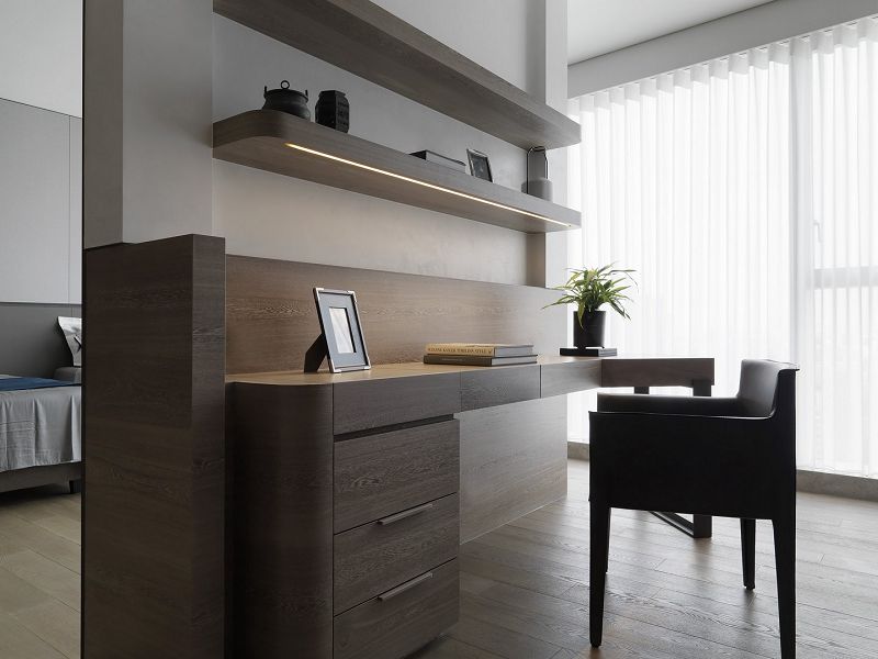 本案為現(xiàn)代極簡風格,設計師多注重空間的合理化和實用性,多種柜子的設計既美觀又能帶來強大的收納功能。冷調(diào)的基礎上點綴暖色,增加了設計的層次感,讓簡約不簡單。