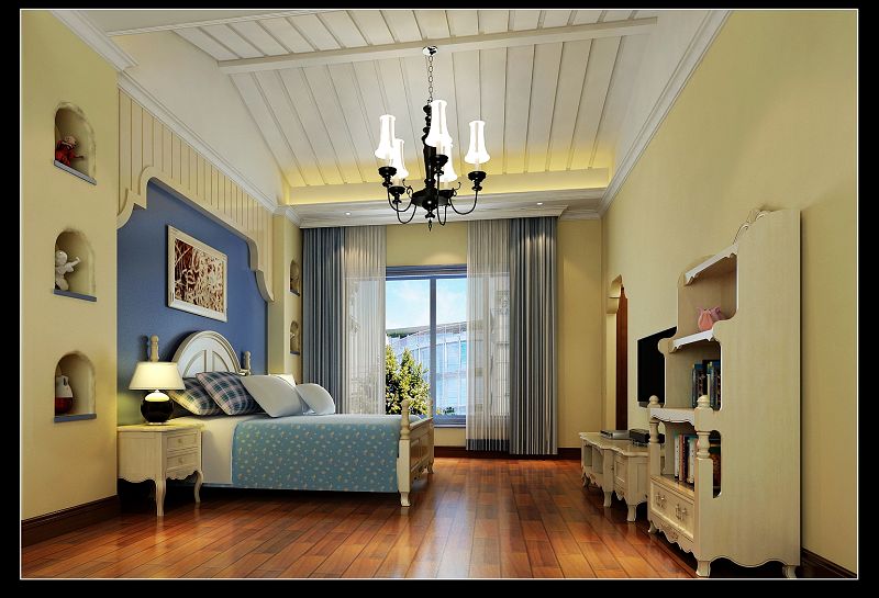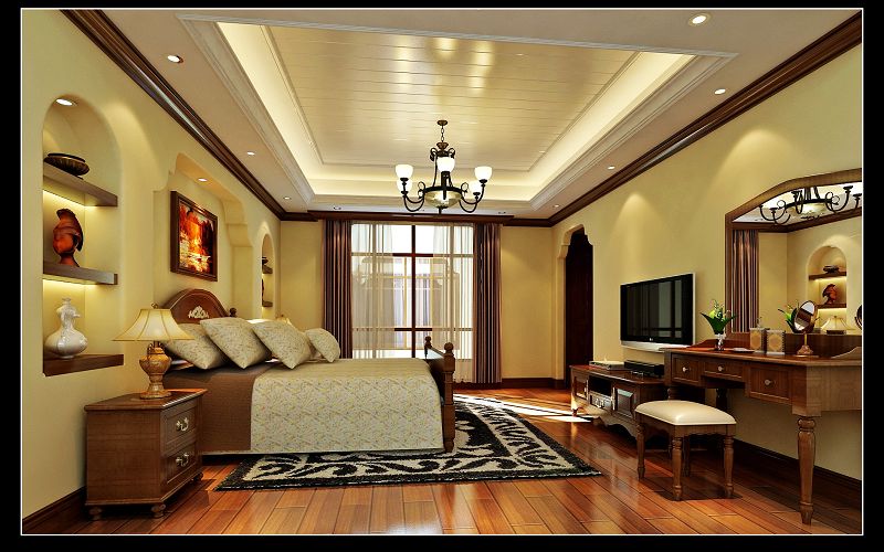 父母房和小孩房,中間是共享空間,主人房巨幅的純毛花地毯、質(zhì)感十足的栗色實(shí)木家具、從屋頂垂下來的鐵藝燈盞,各種工藝復(fù)雜而考究的裝飾品和層層疊疊花團(tuán)錦簇的窗簾布藝,構(gòu)成了一幅典型的美式豪宅殷實(shí)而豐盛的生活場(chǎng)景圖。