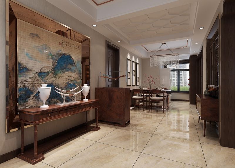 本設(shè)計講求心靈的自然回歸感,給人一種撲面而來的優(yōu)雅氣息。一方面保留了中式的材質(zhì)與色彩運用大致風格,仍然可以很強烈的感受中式風格的痕跡與渾厚的文化底蘊,同時又摒棄了過于復(fù)雜的肌理和裝飾,簡化木花線條。風格已經(jīng)凸顯,反應(yīng)在細節(jié)上的靜謐、內(nèi)斂的風致漫漫蕩漾開來。
