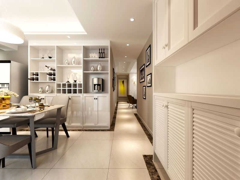 現(xiàn)代風(fēng)格強(qiáng)調(diào)的是功能至上的原則,以最少的材料達(dá)到功能實(shí)現(xiàn)的要求。與現(xiàn)代人緊張忙碌的生活相適應(yīng),現(xiàn)代風(fēng)格的客廳只強(qiáng)調(diào)必要的沙發(fā)、茶幾和組合電器裝置,不再有觀賞性強(qiáng)的壁爐和繁瑣的布藝窗簾等過(guò)分裝飾。墻面與天花板往往處理成白色,避免小客廳的視覺(jué)壓抑,地面采用大理石紋路地磚,美觀實(shí)用。