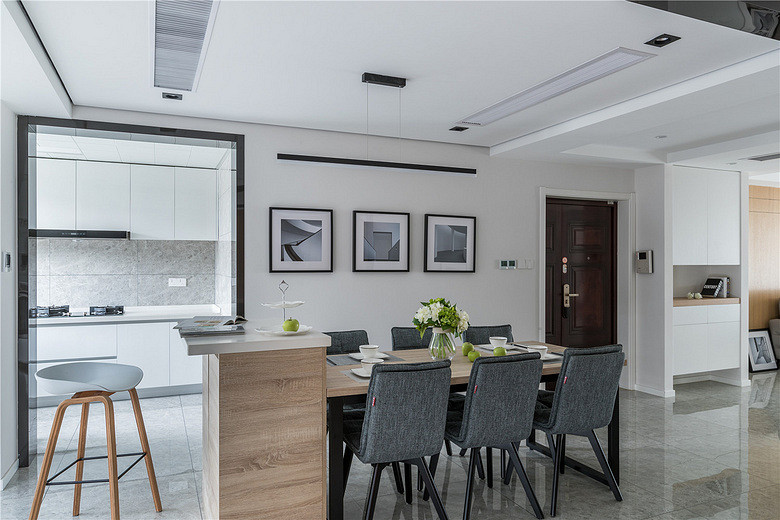現(xiàn)代簡(jiǎn)約風(fēng)色調(diào)冷靜卻不失格調(diào),時(shí)尚、高雅氣質(zhì)自然散發(fā)。另外,還利用雅致裝飾營(yíng)造中式韻味,整體設(shè)計(jì)靜中見(jiàn)柔動(dòng)感。