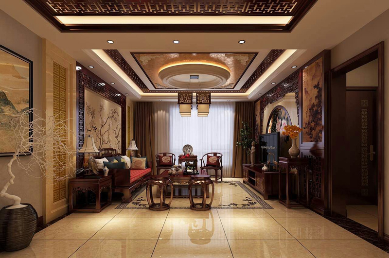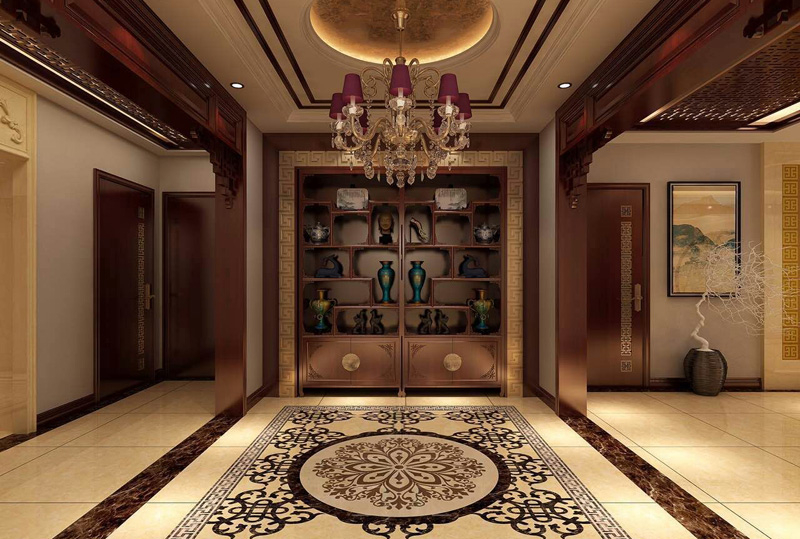 本案就致力于做“雅”的中式設(shè)計。 從入戶開始,首先映入眼簾的便是沉穩(wěn)大氣的博古架,不僅宣示了整個空間古樸大氣的基調(diào),更是展示了主人不俗的文化品位。開闊的空間,莊重的顏色,渾厚的質(zhì)感都展示著中式風(fēng)格帶來的氣派與尊貴。進(jìn)入客廳,羅漢床,圈椅等典型的中式家具處處透露著古色古香,閑暇時光,三五好友,一起品茗賞花,談古論今,這生活怎一個“雅”字了得。