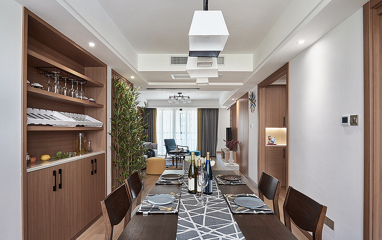 通過(guò)對(duì)木質(zhì)元素的大量運(yùn)用為空間增添了幾分和式禪風(fēng),這樣的空間非常有助于身心的舒解,讓每一個(gè)光臨這里的人都能感受到家的舒適感