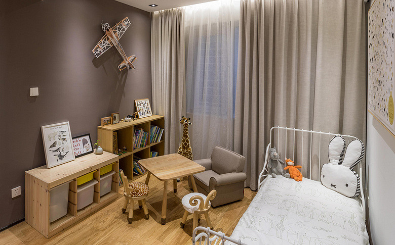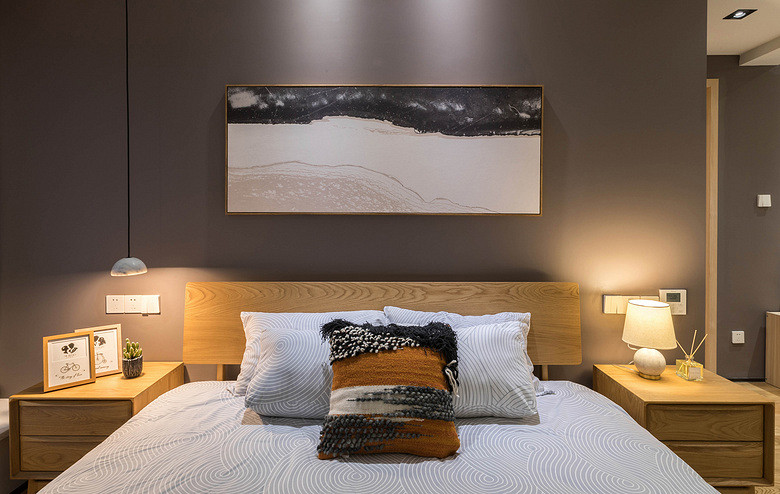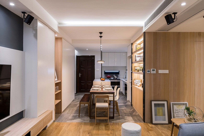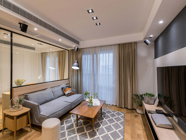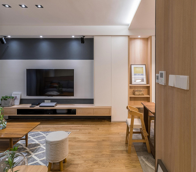 以木質(zhì)打造的圓形茶幾家具,搭配木質(zhì)地板,整體空間給人一種現(xiàn)代舒適的氛圍,輕松休閑的感受。