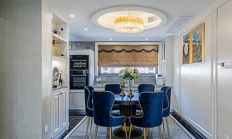 在現(xiàn)代簡(jiǎn)潔的空間基礎(chǔ)下,融入儒雅端莊的新中式軟裝,裝點(diǎn)出一個(gè)充滿雅致與悠閑氣氛的空間。