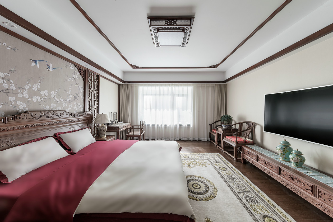 中式風(fēng)格是一種以宮廷建筑為代表的中國(guó)古典建筑的室內(nèi)裝飾設(shè)計(jì)藝術(shù)風(fēng)格,氣勢(shì)恢弘、壯麗華貴、高空間、大進(jìn)深、金碧輝煌、雕梁畫(huà)柱造型講究對(duì)稱(chēng),色彩講究對(duì)比,裝飾材料以木材為主,圖案多龍、鳳、龜、獅等,精雕細(xì)琢、瑰麗奇巧。