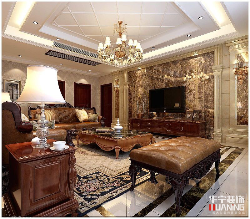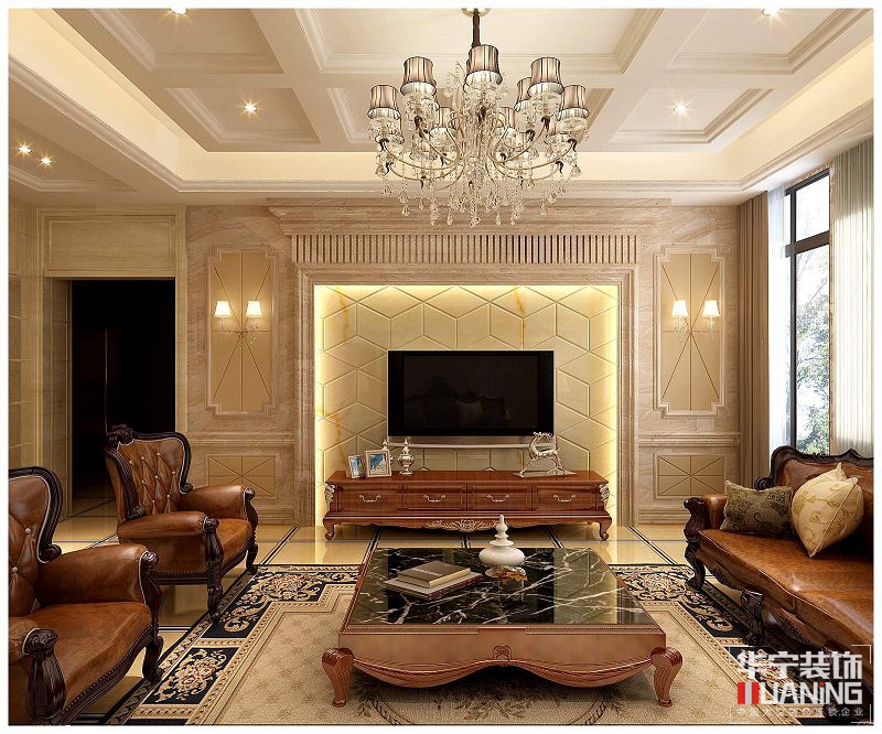 本案設(shè)計(jì)手法為歐式風(fēng)格,將浪漫的復(fù)古氣息與歐式風(fēng)格完美結(jié)合,深入生活、反復(fù)思考、描繪出最豐富浪漫的空間效果??蛷d墻面選擇淺咖色機(jī)理漆,搭配米色大理石電視背景墻,選用歐式家具,將空間層次搭配的條理有序,沙發(fā)背景選擇大理石造型墻,將空間層次分離出來,簡單而不失品質(zhì)。