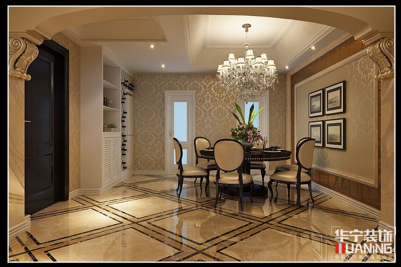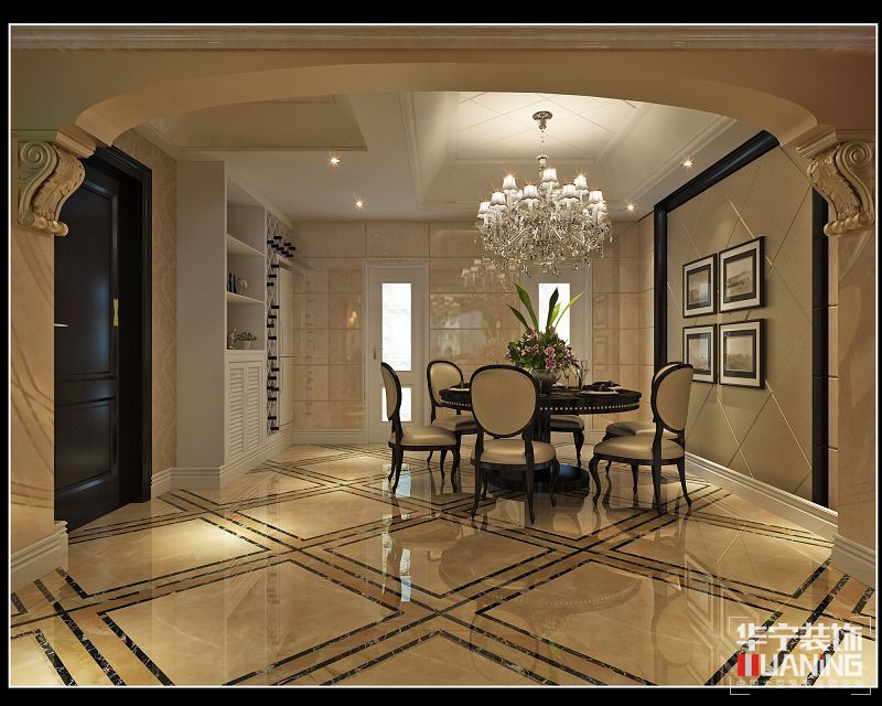 餐廳布置,一抹優(yōu)雅的藍調在華麗的空間中彰顯出屋主的品味。