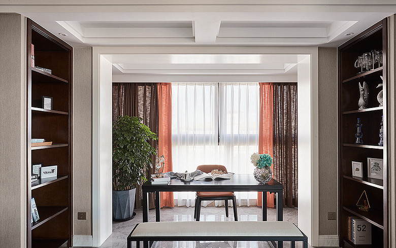 設(shè)計師用灰色調(diào)打造不經(jīng)意的雅致,鮮活的綠色悅動在空間中宛如一片片綠洲,用盡一生努力生長,在空間的山河中自由膨脹。