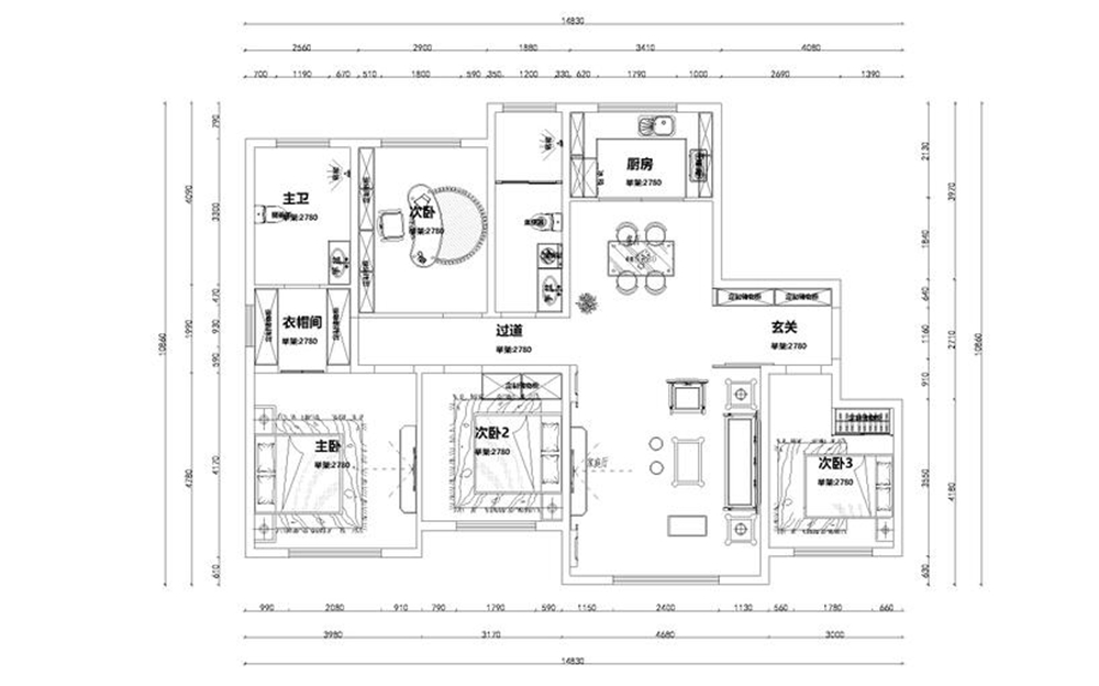 一進(jìn)入戶門,很明顯的玄關(guān)區(qū)域,右側(cè)是定制的玄關(guān)柜,左側(cè)是穿衣鏡,玄關(guān)柜一排四開門,可以放下很多衣物。往前走右側(cè)是餐廳,四人餐桌在餐廳的正中央,旁邊是廚房,因?yàn)閳嚎诒容^寬,所以放了一個(gè)推拉門,兩側(cè)是裝飾畫。地面有波打線,外圈是中灰色,里面是淺灰色??蛷d沙發(fā)是3+2+1,沙發(fā)底座、茶幾和電視柜等都是統(tǒng)一的木色。