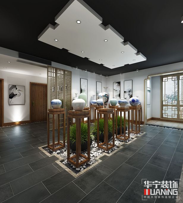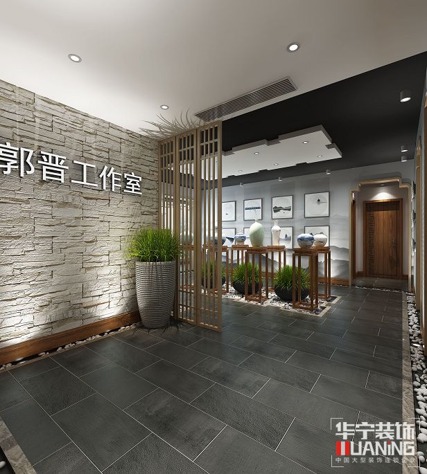 本案的業(yè)主是一位年輕的藝術(shù)家,專業(yè)從事瓷板畫、裝飾陶瓷花瓶的設(shè)計(jì)。本案為其工作室的室內(nèi)空間設(shè)計(jì),采用簡約中式風(fēng)格, 空間風(fēng)格采用輕裝修,重裝飾的表現(xiàn)手法,灰色的地磚、白色的墻面、原木色的線條點(diǎn)綴,空間穩(wěn)重、大氣,集創(chuàng)作、展示、會客為一體。
