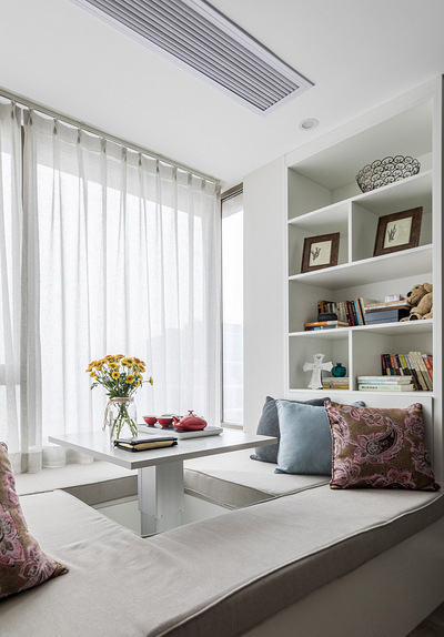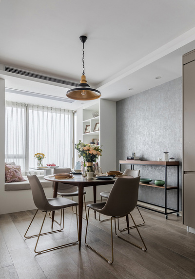 客餐廳公共區(qū)域非常的開闊舒適,客廳的電視設(shè)計很獨特,還是頭一次見。整體空間氣氛給人浪漫舒適的享受感