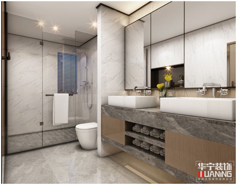主要材料:大理石 仿大理石磚 胡桃木 墻布 硬包 木質(zhì)屏風(fēng) 黑鋼