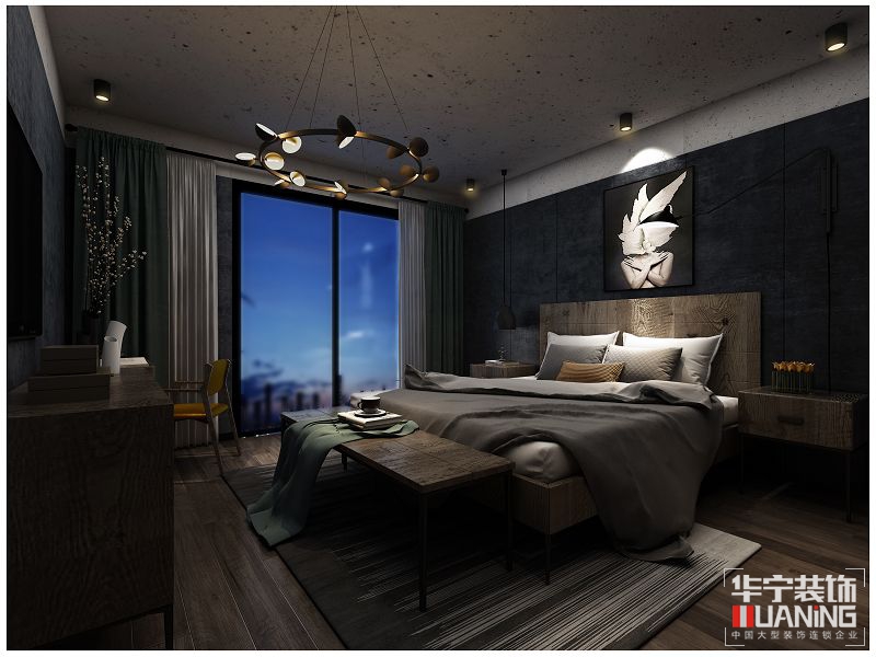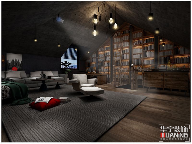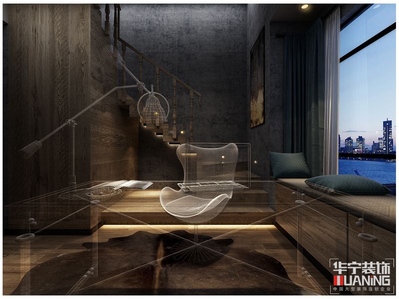 本案設(shè)計(jì)在風(fēng)格定位以輕工業(yè)風(fēng)家居環(huán)境展開,在整體的色調(diào)上把握中性色和暗色調(diào)為主導(dǎo),在公共區(qū)域部分的設(shè)計(jì)上天花的原定白色利用了藝術(shù)涂料使得更有質(zhì)感,在墻面上不增加多余的墻面裝飾利用水泥藝術(shù)漆墻布和硬包的樸素質(zhì)感來襯托軟裝配飾使得空間更富有層次感,開放式的廚房和客廳餐廳融入一體體現(xiàn)共享空間理念,二層的書房觀影區(qū)在裸露的天花頂,原木和黑剛的的襯托下把頹廢質(zhì)感體現(xiàn)出另一種層次。