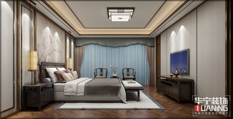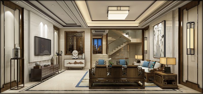 本案設(shè)計是在現(xiàn)代風(fēng)格與傳統(tǒng)中式設(shè)計手法的融合與碰撞,在傳統(tǒng)的中式設(shè)計元素上做了精減和改進,在材質(zhì)的選擇上盡量以暖色系和同類色進行搭配體現(xiàn)代結(jié)合的溫馨素雅,燈光的設(shè)計多數(shù)采用射燈來作為主要光源。在整體背景護墻板 背景墻 房門 樓梯扶手 所有柜子的配色上選用了胡桃木色,強調(diào)設(shè)計的整體感。