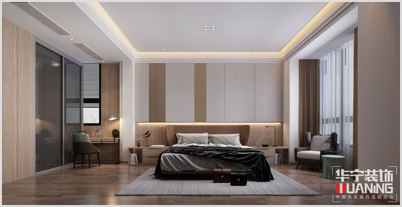 主要材料:大理石 原木色護(hù)墻板 墻布 硬包