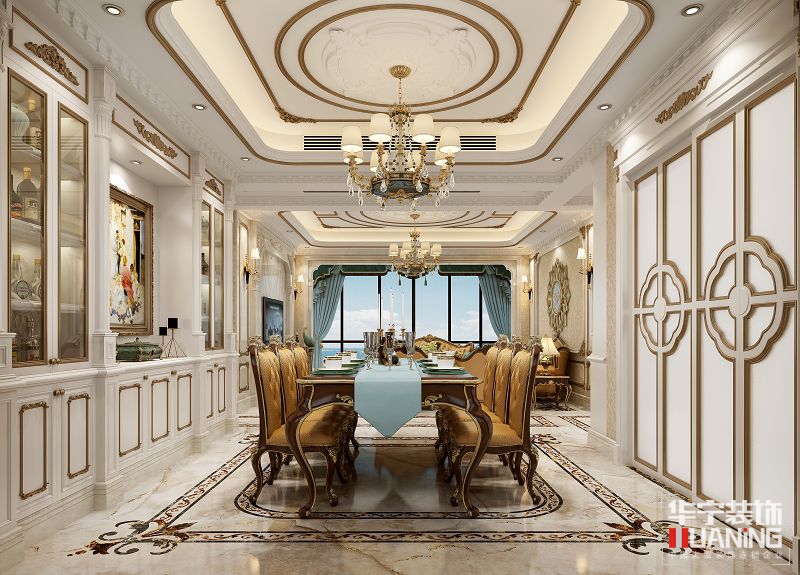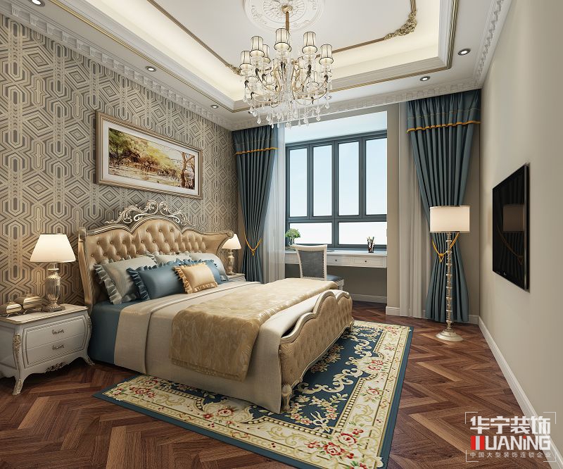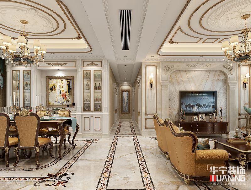 本案為歐式風(fēng)格,設(shè)計(jì)中力求營(yíng)造出一種使空間盡情揮灑源遠(yuǎn)流長(zhǎng)的神韻,在給予空間生命力的同時(shí)也飽含文化情趣。運(yùn)用了護(hù)墻板、天然石材、軟包造型等等來(lái)凸顯歐式的精致和高貴。本案搭配了水晶的燈光、歐式家具、掛畫、精致飾品等完美組合,形成了極具品味的裝飾效果,將奢華的歐式風(fēng)情演繹的淋漓盡致。而臥室的設(shè)計(jì)不只是豪華大氣,更多的是愜意和浪漫。整體給人一種舒適溫馨的家的感覺(jué)。