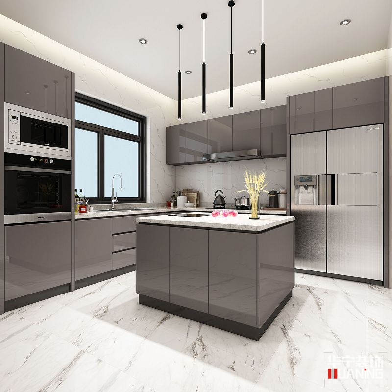設(shè)計說明:本案設(shè)計定位為現(xiàn)代輕奢風(fēng)格。著重體現(xiàn)房屋的一個大氣、新穎、獨具一格。本案更多的使用不銹鋼、護墻板、獨一無二的吊燈、帶金屬邊框的裝飾畫、以及帶不銹鋼材質(zhì)的餐桌、茶幾等現(xiàn)代感產(chǎn)品去凸顯房屋的高端大氣,帶有一定亮澤度的產(chǎn)品讓自身自帶光芒吸引眼球,整個空間都是亮點。開放式的櫥柜給人的感覺就像張開雙手在迎接擁抱好友,是那么的大氣、熱情,充分體現(xiàn)出現(xiàn)代輕奢風(fēng)的大氣、新穎。