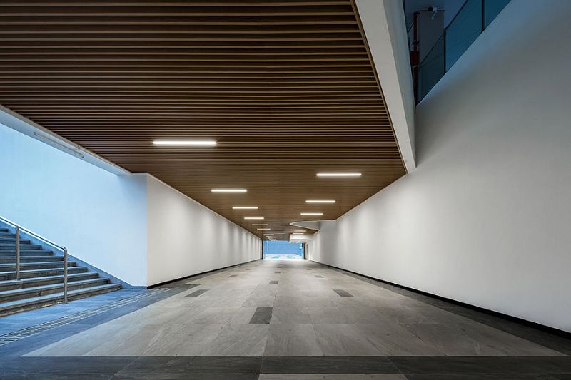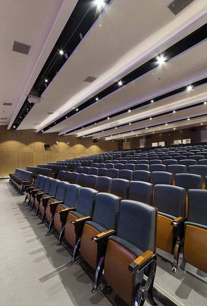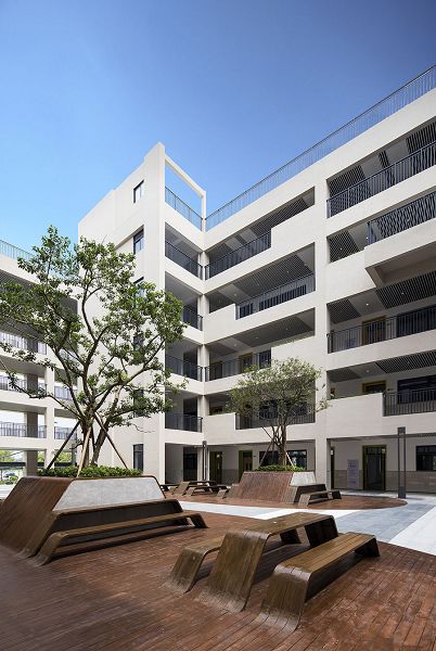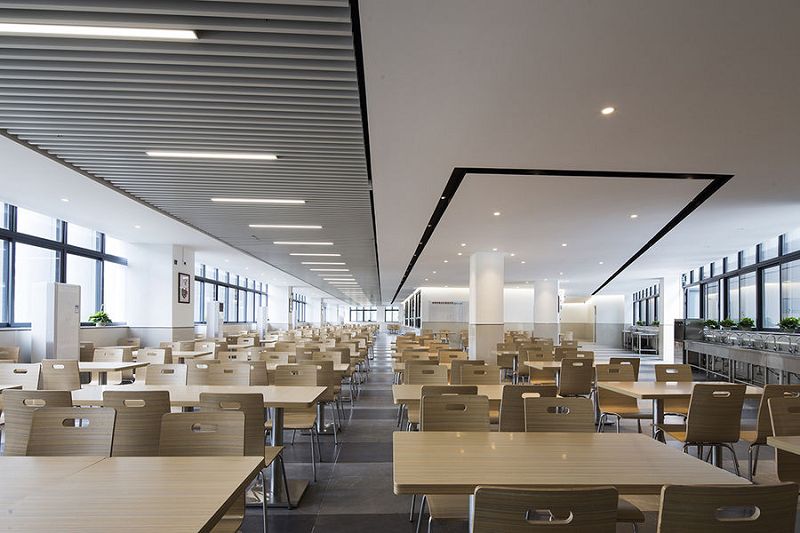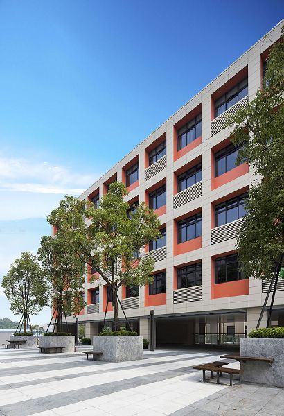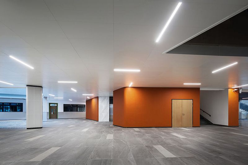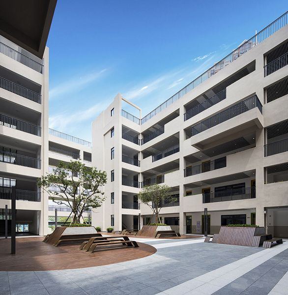 在整體空間劃分中,教學(xué)及輔助用房約為19436平米,生活服務(wù)用房約為6384平米,辦公用房約為2480平米,在學(xué)校常規(guī)功能空間外,設(shè)有專業(yè)舞蹈室、劇場、音樂室等,空間上主張動靜分區(qū),手法上簡潔實用,兼具科學(xué)性與人文色彩。