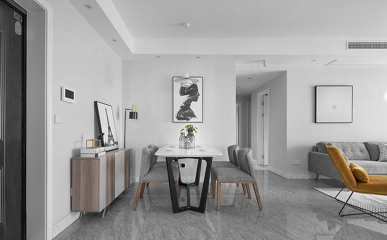 “極簡主義”也譯作簡約主義,是第二次世界大戰(zhàn)之后60年代所興起的一個藝術(shù)派系,現(xiàn)代極簡設(shè)計追求的是空間的實用性和靈活性。居室空間是根據(jù)相互間的功能關(guān)系組合而成的,而且功能空間相互滲透,空間的利用率達(dá)到最高??臻g組織不再是以房間組合為主,空間的劃分也不再局限于硬質(zhì)墻體,而是更注重會客、餐飲、學(xué)習(xí)、睡眠等功能空間的邏輯關(guān)系。
