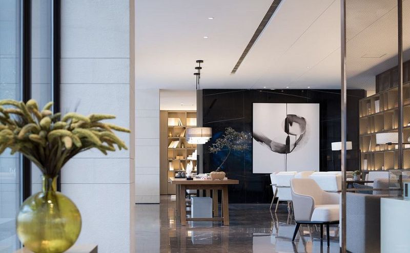 羅源中庚香山小鎮(zhèn)售樓處用現(xiàn)代東方的極簡、以藝術(shù)打底一氣呵成的空間韻律,光與材質(zhì),陳設(shè)織物勾勒渲染出內(nèi)斂雋逸的地域之魂自然歸隱于山體之中,高貴,曼妙,安寧……