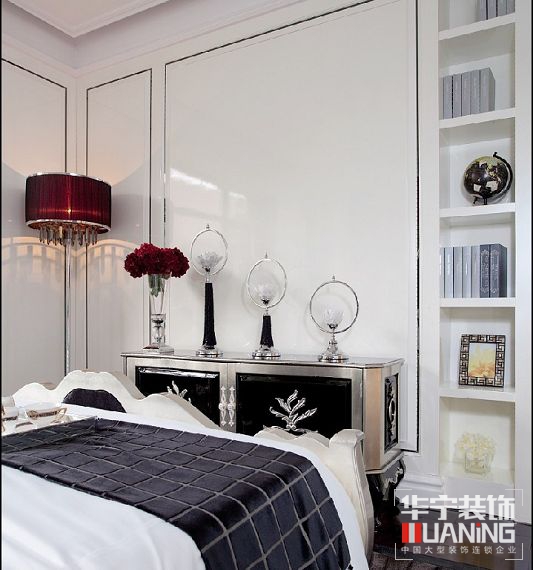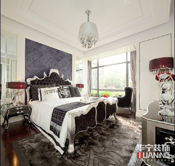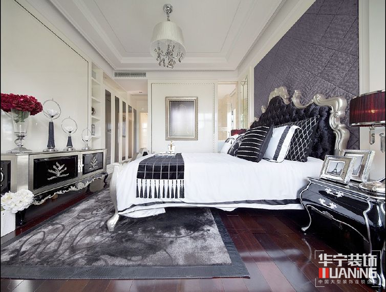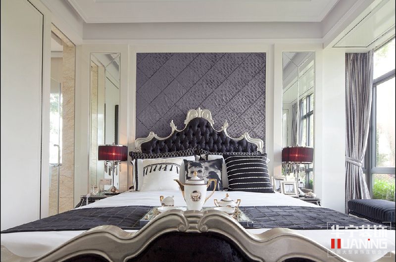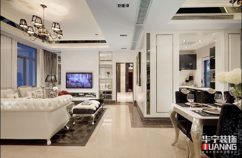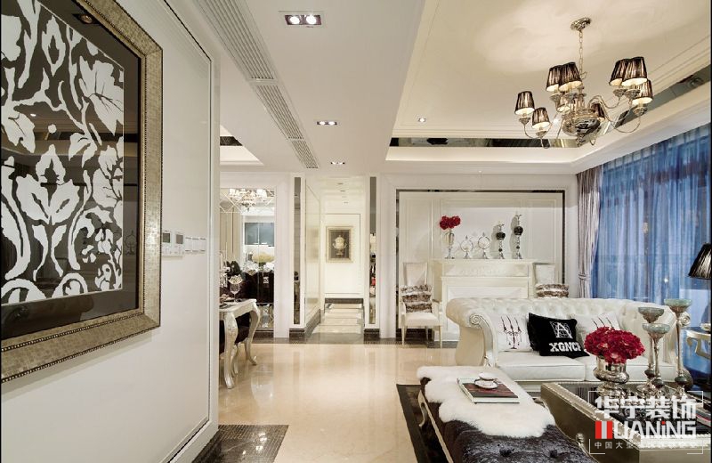 本案設計概念是對于具有高貴氣質與懾人風采的女性形象的想象,風格奢華而不奢靡,貴氣而不張揚,簡化的古典線條,帶著一種悠閑舒適感??臻g富有的鉆石絨硬包以及鏡面對空間的延伸,讓空間的質感細膩的呈現(xiàn)出了別樣的奢華度。大面積的珠光白漆飾面增加了空間的溫婉之氣,極富心思的家具配飾,隱約的顯露了她的內在美。設計師想讓樣板空間能讓人感覺嫻靜舒適,讓它高貴優(yōu)雅,傾城傾國之氣彌散開來。