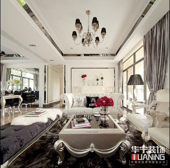 主材:雅士白大理石,黑白根大理石,車邊銀鏡,黑鏡鋼,珠光白漆飾面,鉆石絨硬包,藝術墻紙。