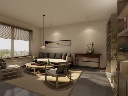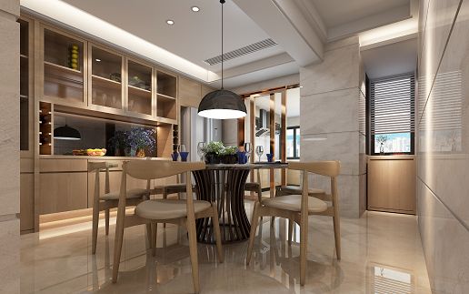 現(xiàn)代風(fēng)格家居重視功能和空間組織,注意發(fā)揮結(jié)構(gòu)構(gòu)成本身的形式美,造型簡(jiǎn)潔,崇尚合理的構(gòu)成工藝,尊重材料的性能,講究材料自身的質(zhì)地和色彩的配置效果,發(fā)展了非傳統(tǒng)的以功能布局為依據(jù)的不對(duì)稱的構(gòu)圖手法。一張沙發(fā)、一個(gè)茶幾、一個(gè)酒柜的客廳卻顯得相當(dāng)?shù)姆比A熱鬧。沙發(fā)對(duì)面的墻,用紅磚圖案的壁紙與幾塊原木搭建了一個(gè)壁爐景致,墻上一個(gè)層架,可以幾幅風(fēng)景畫,一些飾品讓整面墻更為生動(dòng),再加上一盆綠色植物與茶幾上仙人掌花束,空間的自然感就更強(qiáng)烈了。