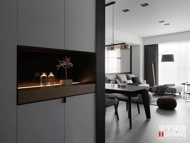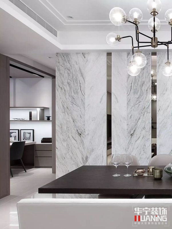 本案以摩登美式和后現(xiàn)代風(fēng)格完美融合。加以黃銅,玻璃,大理石等輕奢元素作為點睛。使古典和現(xiàn)代相結(jié)合,華貴而不張揚,造型簡潔時尚而又不單調(diào)。黃銅和大理石的高級感,在輕奢風(fēng)中相互映襯,質(zhì)量十足;黑色金屬和玻璃天生便是最佳CP。簡潔明快的線條,使整個空間更具層次高。一切都是恰到好處。這一切都是透露出在簡約中追求輕奢高品質(zhì)的生活理念!