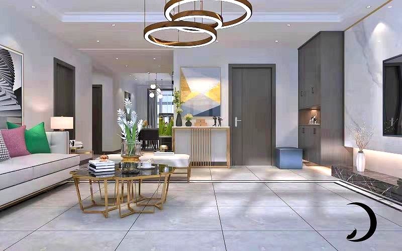 設(shè)計理念:現(xiàn)代中式客廳貴在刪繁就簡,放棄了對風(fēng)格樣式的表象追求,用簡潔明快的線條,取代了傳統(tǒng)的雕梁畫棟,造型簡潔,不事堆砌,色彩上也更加舒適柔和,給空間帶來豐富的視覺效果。