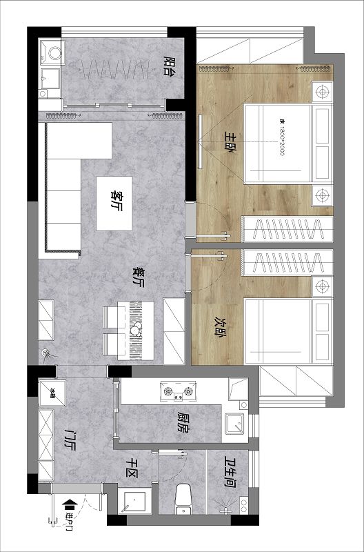 建筑面積:90㎡(兩室一廳一廚一衛(wèi))