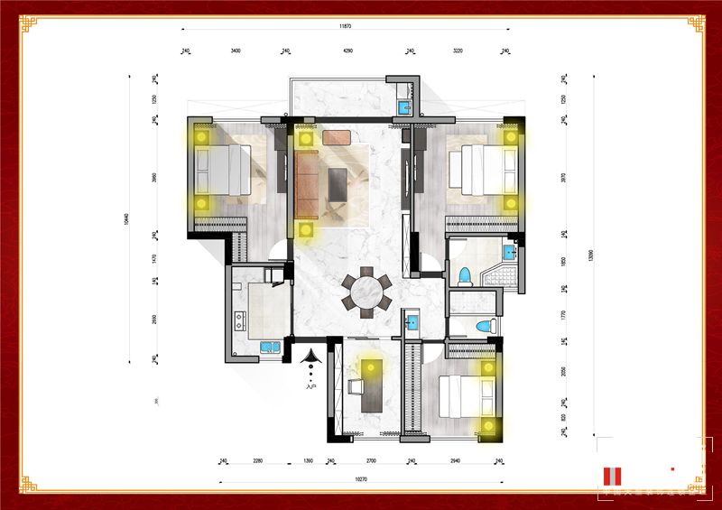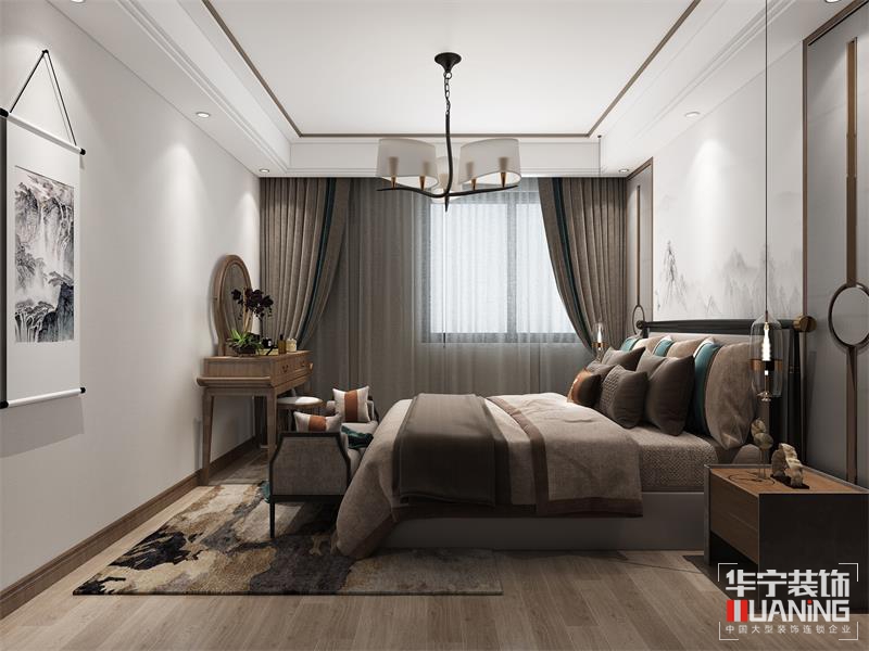 設(shè)計(jì)理念:新中式風(fēng)格,是中式元素與現(xiàn)代材質(zhì)的巧妙兼柔的布局風(fēng)格,它同時(shí)明清家具、窗欞、布藝床品相互輝映,經(jīng)典地再現(xiàn)了移步變景的精妙小品