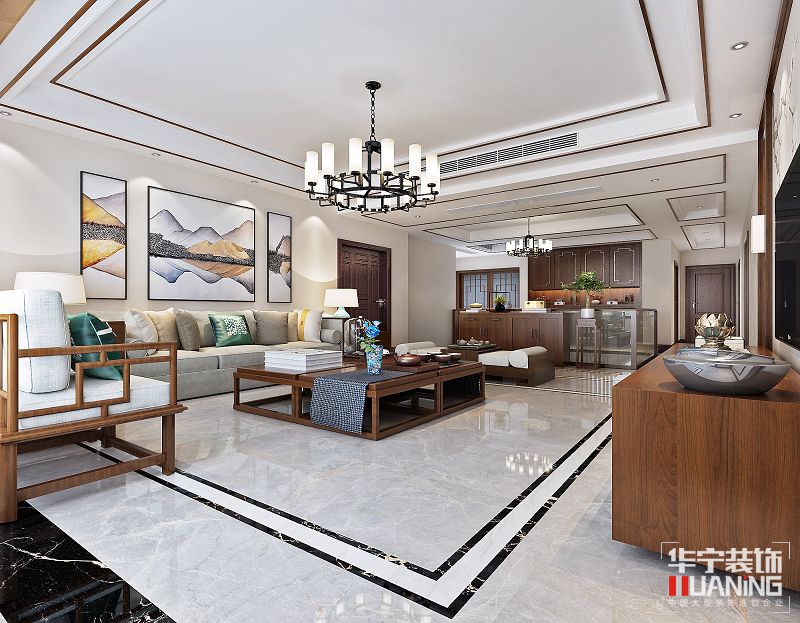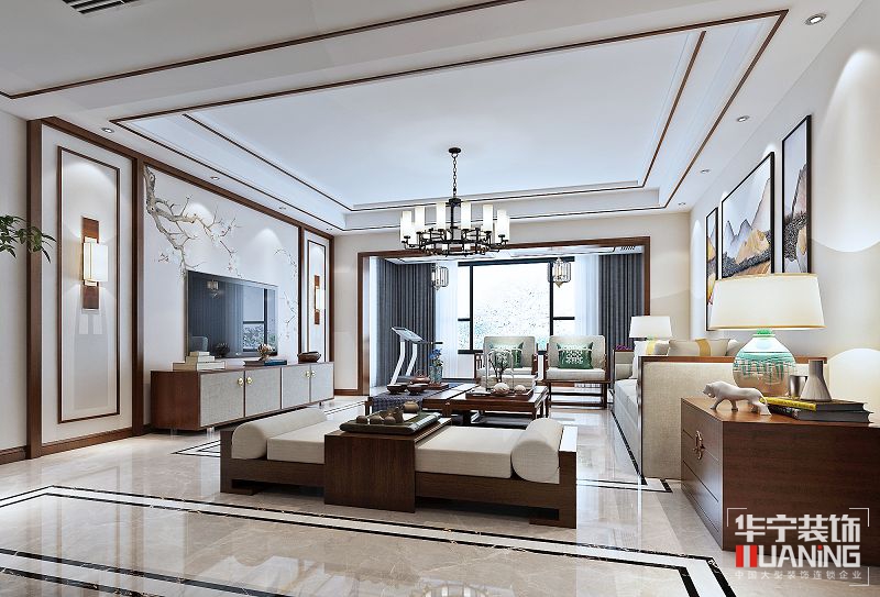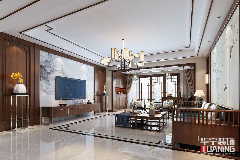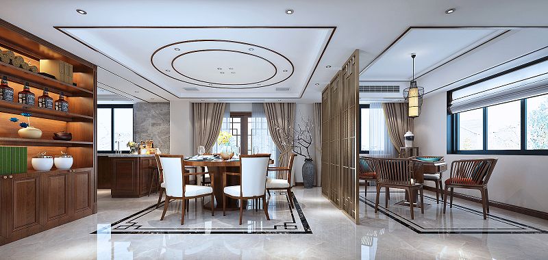 新中式風(fēng)格非常講究空間的層次感與跳躍感。在需要隔絕視線的地方,則使用中式的屏風(fēng)、中式木門、工藝隔斷、簡約化的中式“博古架”等。通過這種新的分隔方式,單元式住宅就展現(xiàn)出中式家居的層次之美。再配以一些簡約的造型為基礎(chǔ),添加了中式元素,使整體空間更加豐富,大而不空、厚而不重,有格調(diào)又不顯壓抑。