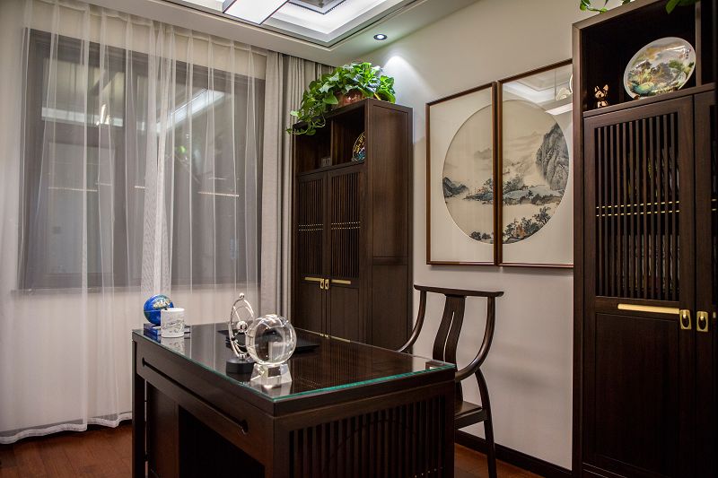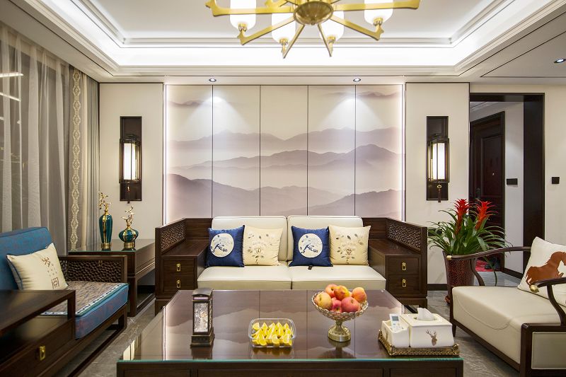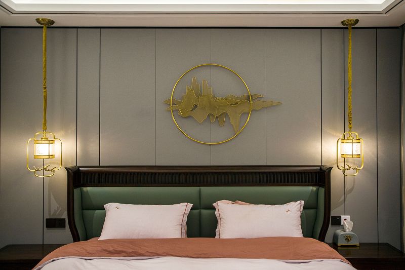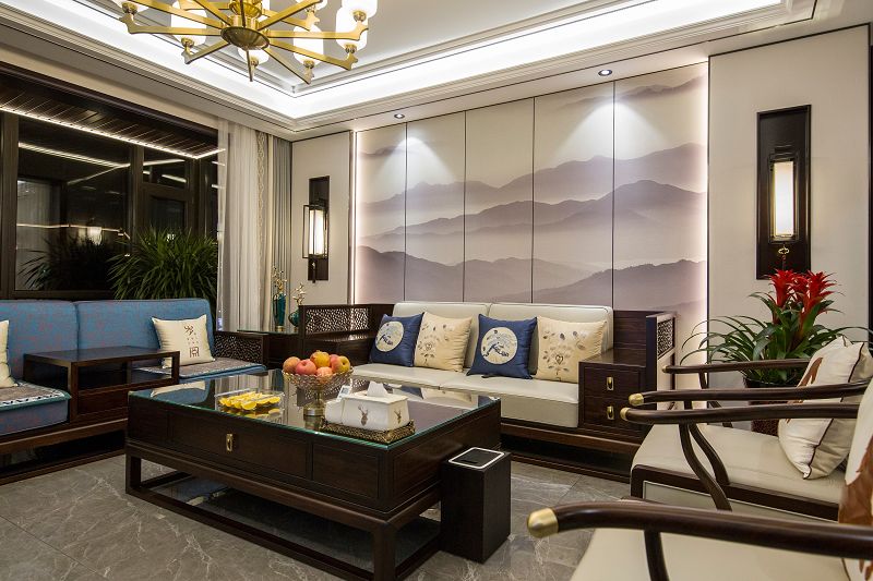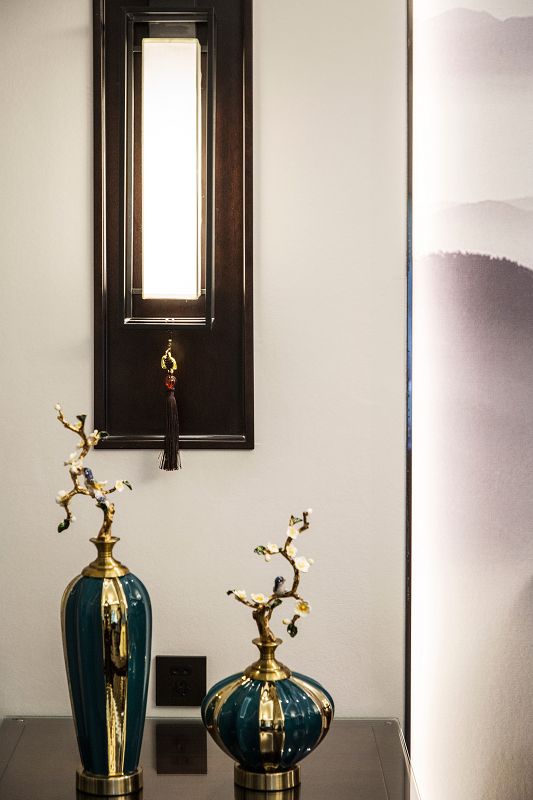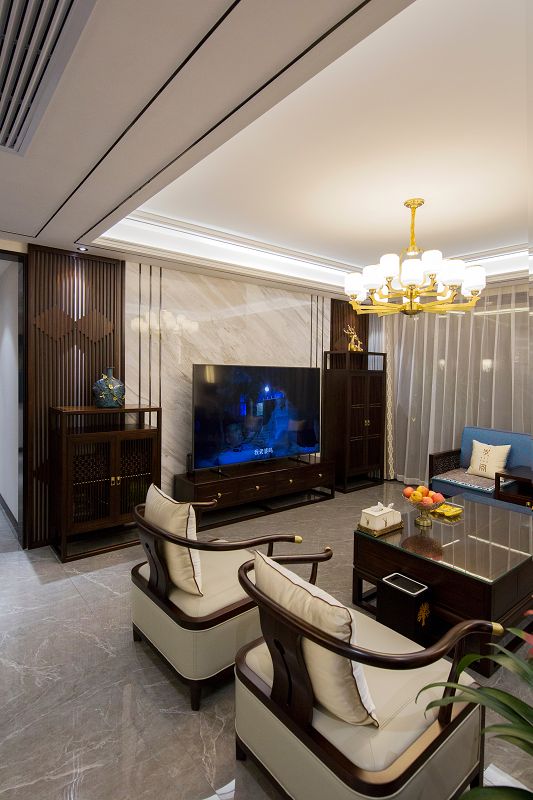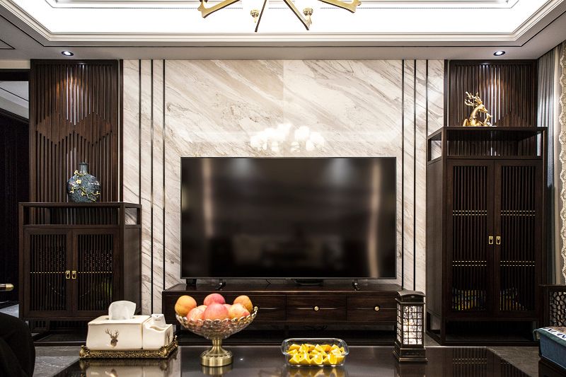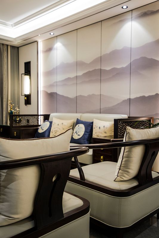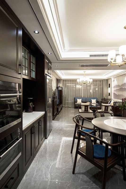 新中式風格回歸東方美學生活方式,締造傳統(tǒng)美學之韻,不見庸俗之色,只在意、境當中。傳統(tǒng)空間極具東方韻律,由高轉深,由深轉近,呈現(xiàn)出一種古韻的秩序感,大理石在空間中跟隨光線的線性變換融合再深木對稱飾面的充分運用,使得節(jié)奏的變換充滿詩意的溫柔