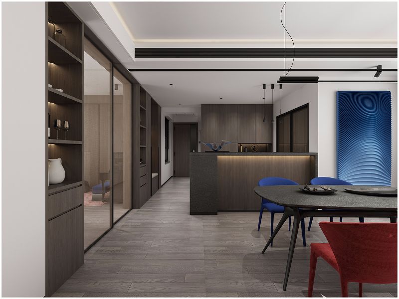 設(shè)計(jì)理念:以空為意,具納豐富可能性。感官上簡(jiǎn)約整潔。品味和思想上更為髙雅。 色彩定位上做了盡可能多的調(diào)和色,主色調(diào):啞黑·白色·灰色·大地色·木本色同時(shí)點(diǎn)綴藍(lán)色·朱紅色。 “水墨丹青”為新時(shí)代的中式預(yù)留聯(lián)想的空間。