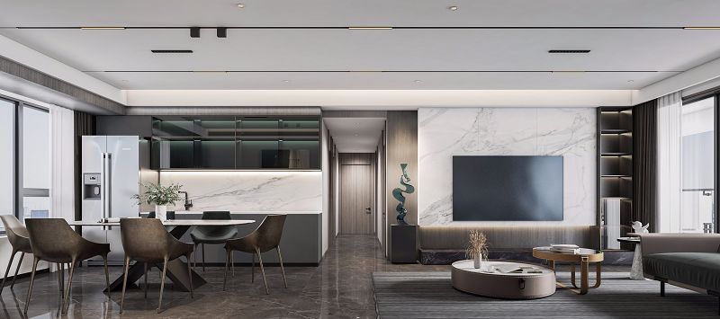 隨著時代的進(jìn)步,當(dāng)代年輕人對于「家」的設(shè)定產(chǎn)生更多的期望。無論空間多大,懷揣著對生活的熱情,我們希望家不僅是居住的地方,也是激發(fā)熱情與活力的場所......... 靜謐藍(lán)與神秘綠塊組合適當(dāng)填充,配以皮革、大理石材質(zhì)的家具增添層次感,不同材質(zhì)與質(zhì)感的重疊,營造出現(xiàn)代氣質(zhì)與藝術(shù)氛圍.........