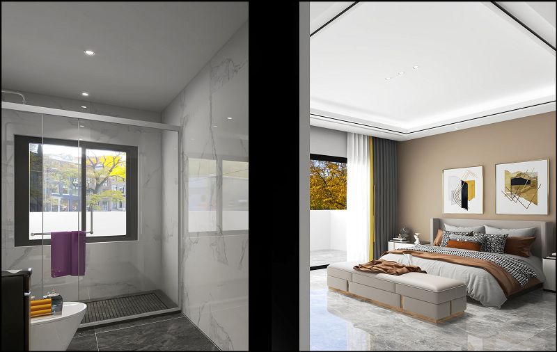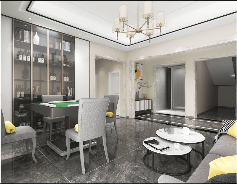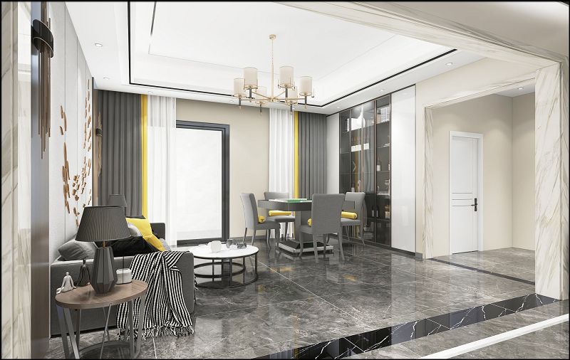 本方案設(shè)計(jì)風(fēng)格為現(xiàn)代風(fēng)格 顏色主要為黑白灰加木色搭配 地面采用800X1600大板瓷磚