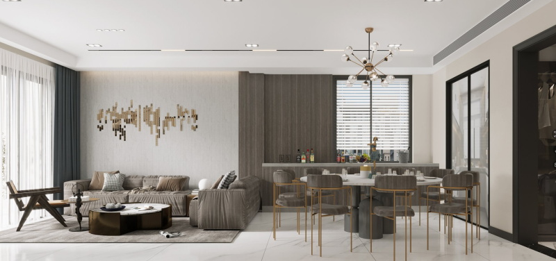 本案的空間情緒搭配中和萬物的灰色,通過豐富空間層次感,尋求剛毅調(diào)性與空間功能性的平衡。動靜虛實的空間氛圍得益于設(shè)計師對細節(jié)的關(guān)注與把控,精心設(shè)計的空間布局最大限度地利用了每一寸室內(nèi)面積。設(shè)計師尋求探究主人的生活方式,通過居住需求、空間布局、材料質(zhì)感和情趣修養(yǎng),深入挖掘住宅設(shè)計的真諦
