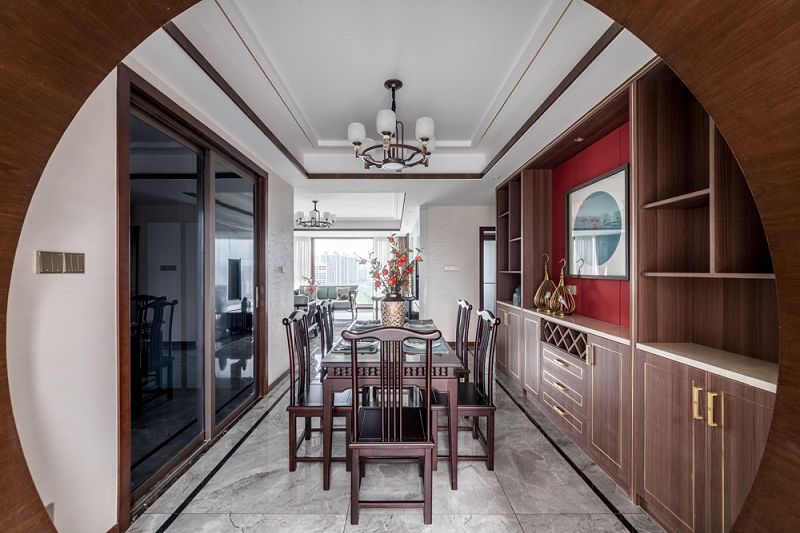 設(shè)計(jì)理念:邀一方水土之精粹入戶,將中式符號(hào)之美,傳統(tǒng)古意之韻皆寫入其中,有重彩濃墨,嚴(yán)正布局的對(duì)稱之講究,亦有淺淺勾勒,精巧靈動(dòng)之思在其中。造境藏深意,一眼歸千年。光影斑駁,材質(zhì)、物境交錯(cuò),調(diào)和出一室的沉靜而悠長(zhǎng),一步一景,流轉(zhuǎn)出四季的各異,自然光穿越千年,為古與今的相遇共鑒此刻。古色古香是中式的氣韻,一卷一物的肌理與雅意,將千年的文化傳承微縮于空間之中,一枝鳴啾啾盤活了一室的靈氣,心遠(yuǎn)喧囂地,情歸最濃時(shí)。