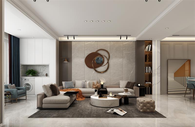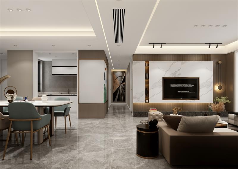 本文案現(xiàn)代輕奢是一種生活態(tài)度。 本案試圖營造一種低調奢華的現(xiàn)代簡約氛圍,一種既厚重華麗又具時尚特色的視覺效果。整個空間用硬朗的金屬和石材與柔性的墻紙搭配,與灰色亞光地面相互映襯,再加上家具和軟飾的和諧統(tǒng)一,使的整個空間時尚簡約但又不失奢華。