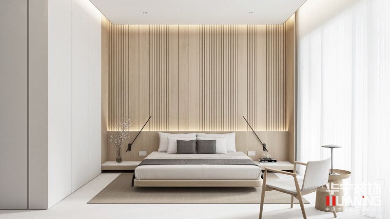 案例說明:白色+自然木質(zhì)元素,裝飾上簡(jiǎn)約,洋溢著對(duì)生活安靜、簡(jiǎn)單、純粹的追求。凈白亮麗的瓷磚與木地板清晰的邊緣界限巧妙分隔出廚房空間。臥室背景墻凹凸的條紋肌理在光線的映照下,清晰有序的光影極具舒適安靜的空間。