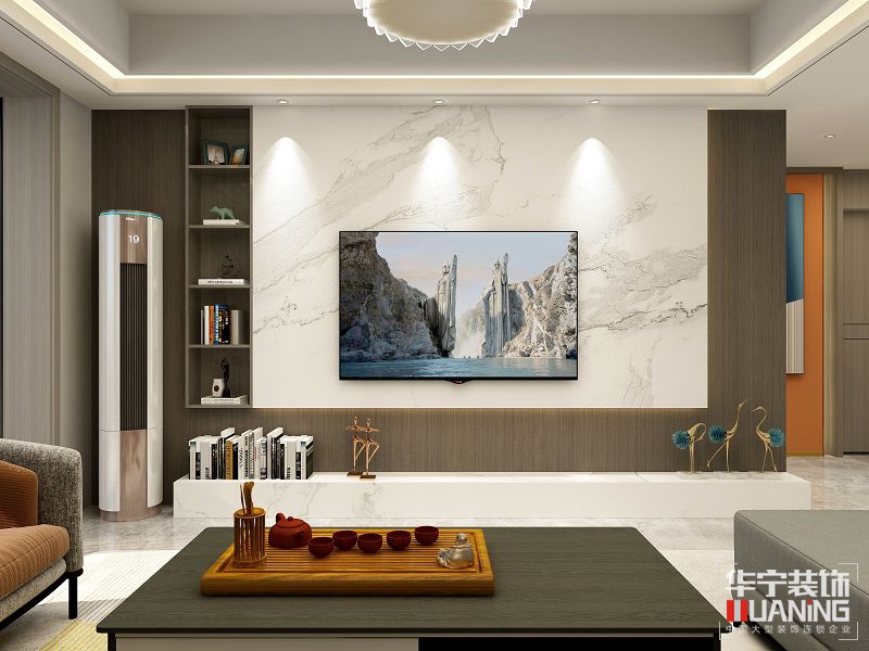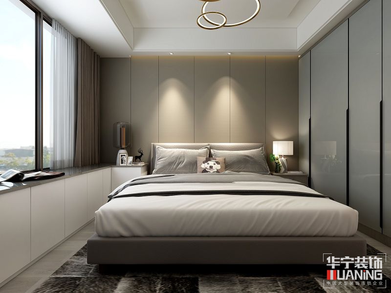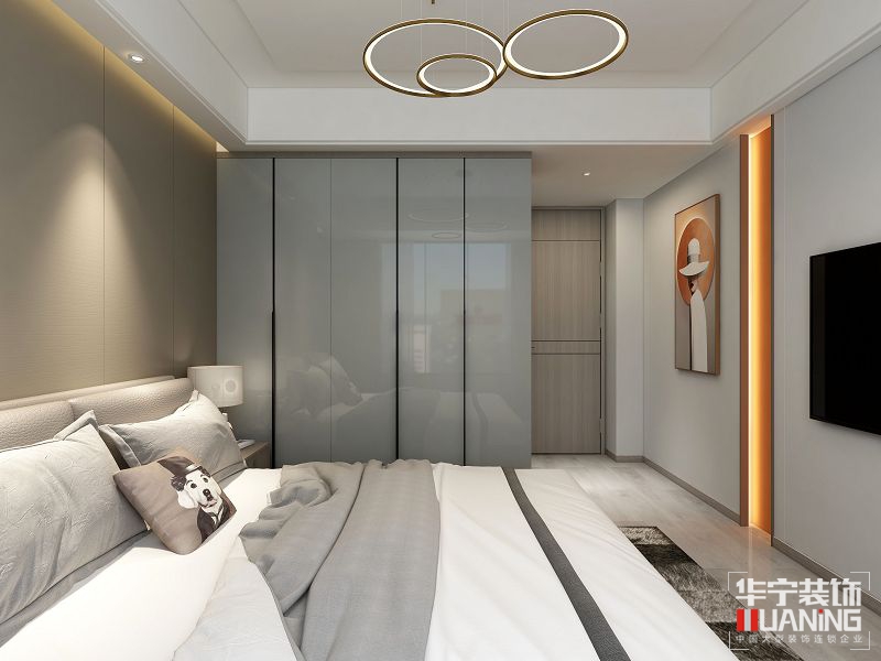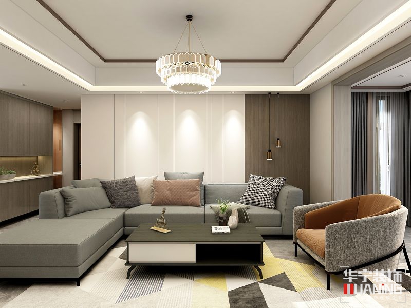 本案硬裝的表現(xiàn)化繁為簡,減少多余色彩和過于形式化的設(shè)計(jì)空間的背景無限后退,讓空間于人的記憶點(diǎn)高于裝飾,使得整體空間干練精致又不失柔和優(yōu)雅;大面積是灰調(diào)純粹又實(shí)用的色彩,簡化視覺空間,又鋪設(shè)出空間的基底,再運(yùn)用木飾面點(diǎn)綴,突出自然紋理;以及軟裝形態(tài)、色彩拉開層次,使得空間表現(xiàn)多元化,在自然和諧與舒適中變幻出現(xiàn)代簡約的生活空間。