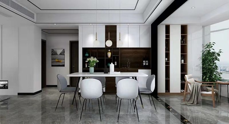 墻面、地面、頂面及家具陳設(shè)、燈具等等均以簡潔的造型、純潔的質(zhì)地、精細的工藝為特征。