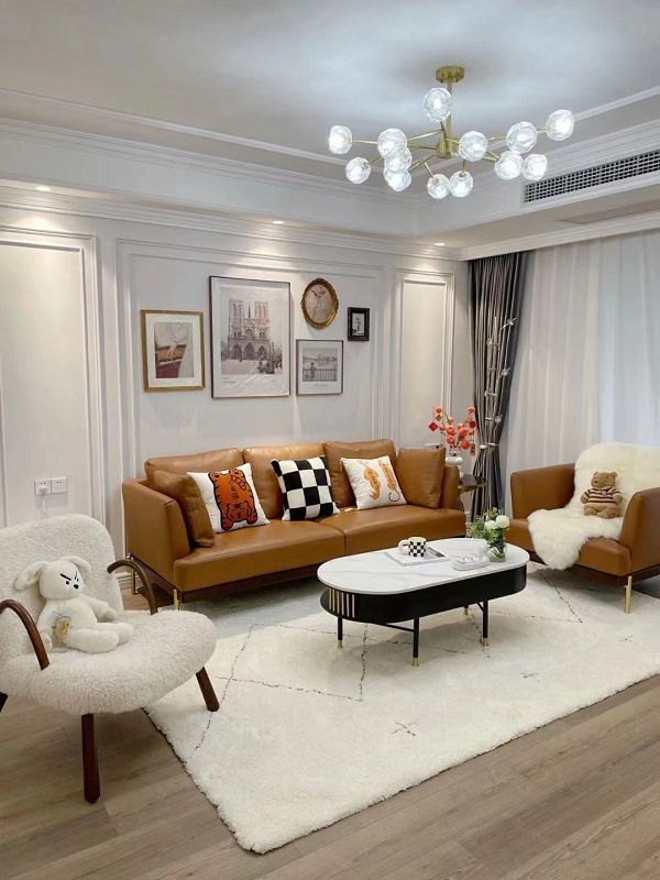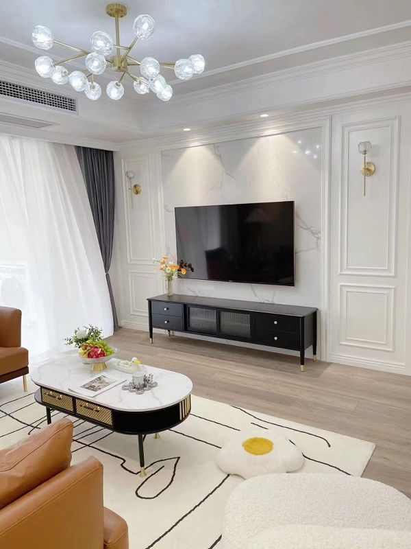 風(fēng)格介紹:設(shè)計(jì)師以舒適細(xì)致的人文關(guān)懷為主軸,規(guī)劃靈動(dòng)開(kāi)放布局的同時(shí),用人文情感去圍造生活的儀式感,創(chuàng)造一個(gè)充滿可能性的舒適空間。本案結(jié)合現(xiàn)代美式,用了柔美的石膏線條點(diǎn)綴,也結(jié)合輕奢金屬元素,整體搭配出舒適大方的感覺(jué)