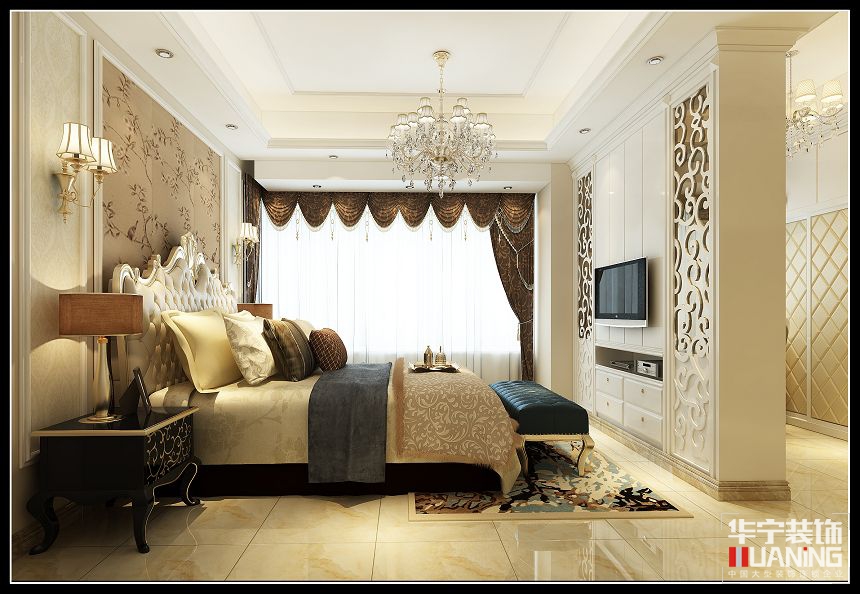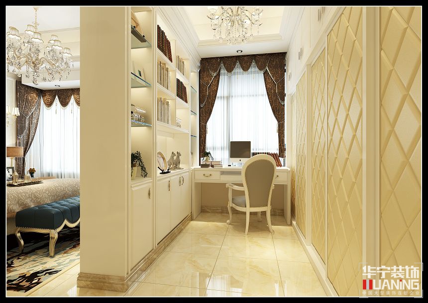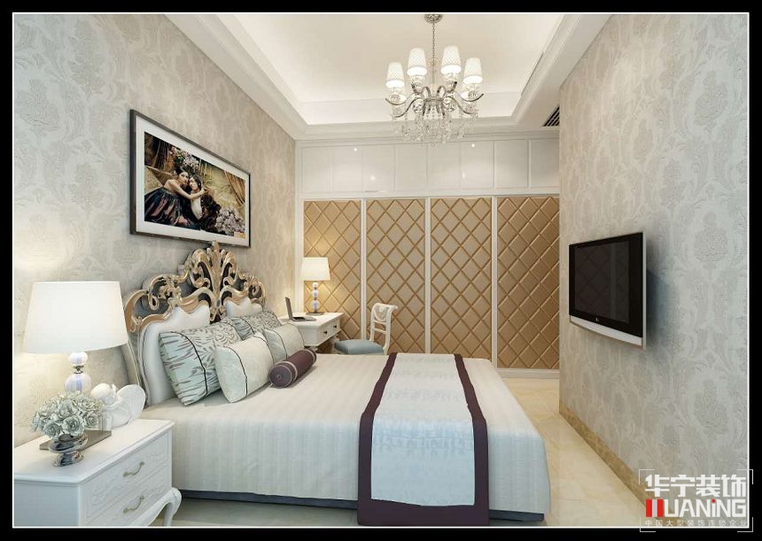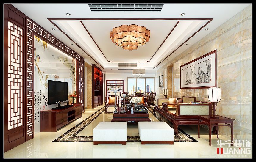 本案的客廳設(shè)計風(fēng)格為現(xiàn)代中式,主要體現(xiàn)在傳統(tǒng)家具(多為明清紅木家具為主),電視背景以中式山水瓷磚畫及中式木花為主的裝飾。室內(nèi)多采用對稱式的布局方式,格調(diào)高雅,造型簡樸優(yōu)美,色彩濃重而成熟。中國傳統(tǒng)室內(nèi)裝飾藝術(shù)的特點是布局對稱均衡,端正穩(wěn)健,充分體現(xiàn)出中國傳統(tǒng)美學(xué)精神。主臥室則以現(xiàn)代歐式白色為主,門的造型設(shè)計,包括房間的門和各種柜門,既要突出凹凸感,又要有優(yōu)美的弧線,兩種造型相映感趣,風(fēng)情萬種。 房間采用反射式燈光照明和局部燈光照明,置身其中,舒適、溫馨的感覺襲人,讓那些為生活奔波的人找到了歸宿。歐式風(fēng)格的家居選用現(xiàn)代感強烈的家具組合,特點是簡單、抽象、明快,現(xiàn)代感強,組合家具的顏色選用白色和流行色,仿佛為主人編織了一個明快美麗的夢想。 此案為中西結(jié)合的經(jīng)典作品。