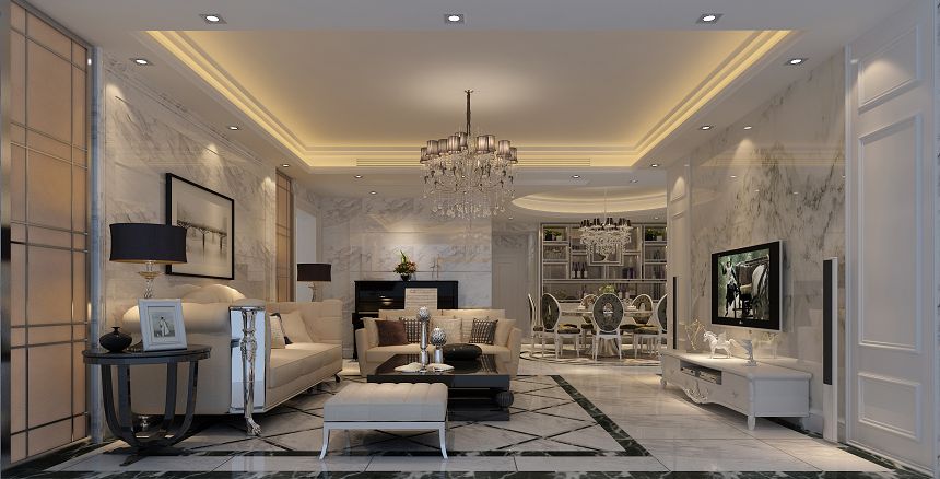 本案是以簡歐為主題,簡歐是歐式裝修風(fēng)格的一種,多以象牙白為主色調(diào),以淺色為主深色為輔。相對比擁有濃厚歐洲風(fēng)味的歐式裝修風(fēng)格,簡歐更為清新、也更符合中國人內(nèi)斂的審美觀念。在功能方面,客廳是主任品味的象征,體現(xiàn)了主人品格,地位,也是交友娛樂的場合,電視背景墻采用大理石做的幾何體造型,既簡單又大方。餐廳是家居生活的心臟,不僅要美觀,更重要的實(shí)用性,整體性。餐廳的燈光很重要既不能太強(qiáng)又不能太弱,燈光則以溫馨和暖的黃色為基調(diào),頂部做了簡單的吊頂。墻面貼了大理石,在餐廳的墻面上作了酒柜和裝飾柜,可以擺放一些飾品,可以增加以下餐廳的情調(diào)。簡歐風(fēng)格沿襲古典歐式風(fēng)格的主元素,融入了現(xiàn)代的生活元素。歐式的居室有的不只是豪華大氣,更多的是愜意和浪漫。通過完美的典線,精益求精的細(xì)節(jié)處理,帶給家人不盡的舒服觸感。