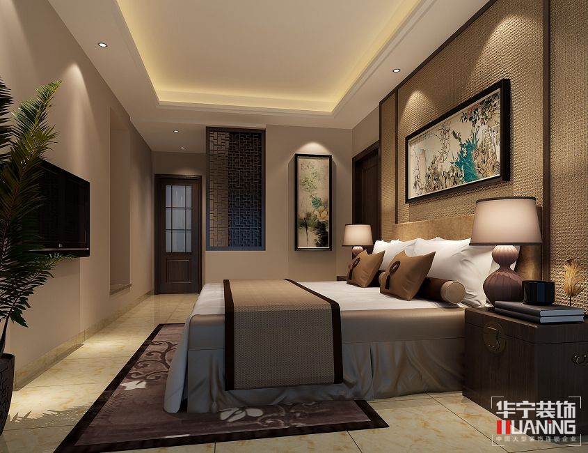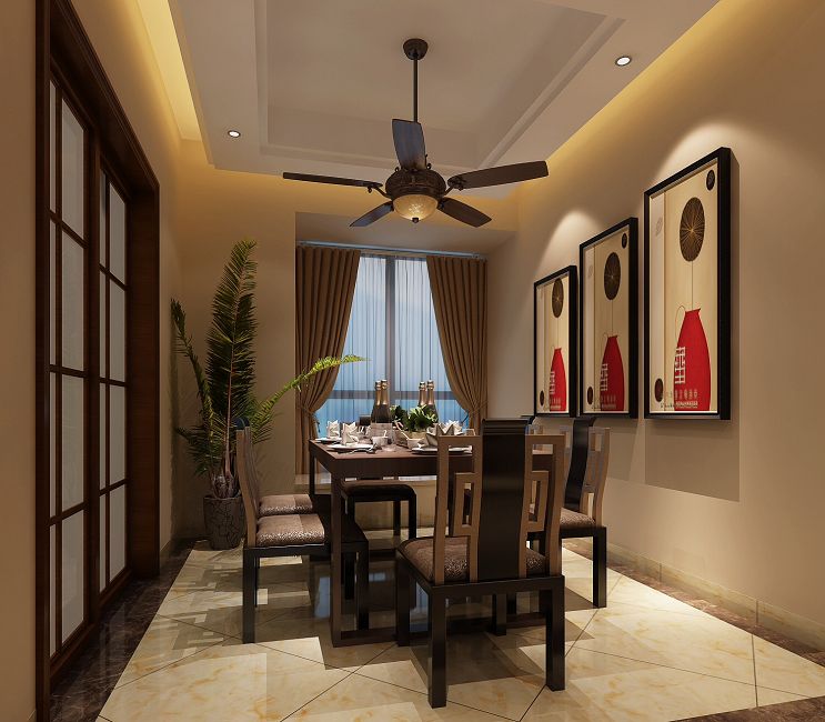 本案以中式元素為主,中國傳統(tǒng)居室非常講究空間的層次感。這種傳統(tǒng)的審美觀念在中式風(fēng)格中,又得到了全新的闡釋:依據(jù)住宅使用人數(shù)的不同,做出分隔的功能性空間,采用“啞口”或簡約化的“博古架”來區(qū)分;在需要隔絕視線的地方,則使用中式的屏風(fēng)或窗欞。居室在色彩方面秉承了傳統(tǒng)古典風(fēng)格的典雅和華貴,但與之不同的是加入了很多現(xiàn)代元素,呈現(xiàn)著時(shí)尚的特征。